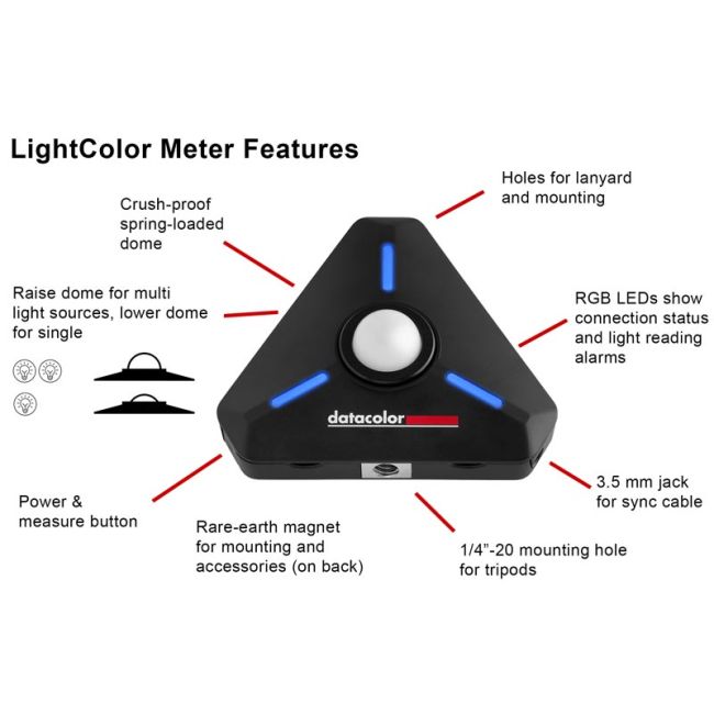 Take the guesswork out of exposure settings for your camera with the Datacolor LightColor Meter. The wireless, Bluetooth-connected meter measures any kind of lighting plus color temperature, streaming it to your smartphone (iOS/Android) in real-time via the free Datacolor LightColor Meter app. Saves you time during both setup and post production editing.The Datacolor LightColor Meter Key Feature Highlights